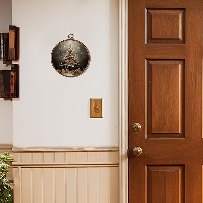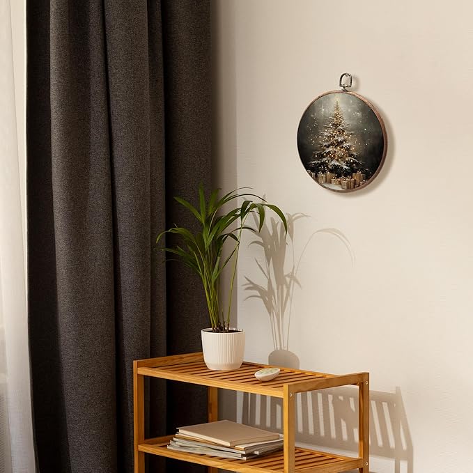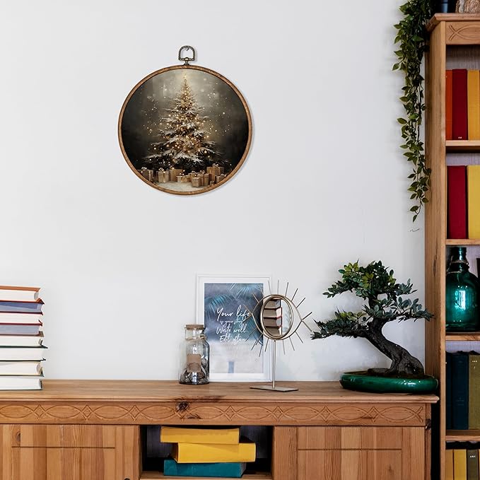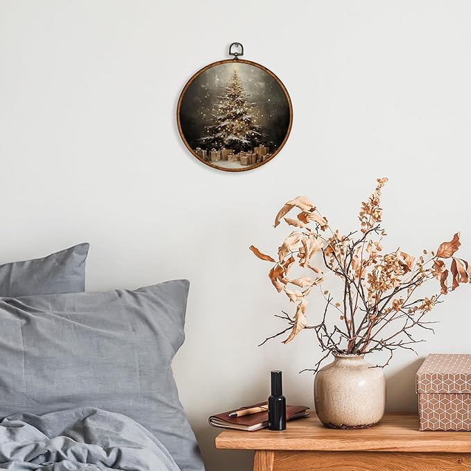 KSDUT Vintage Christmas Wall Decor Art - Vintage Christmas Tree Wall Art Canvas Frame Hanging Prints, Merry Xmas Holiday Round Wall Art Decor for Home Farmhouse Decorations 10"x10"