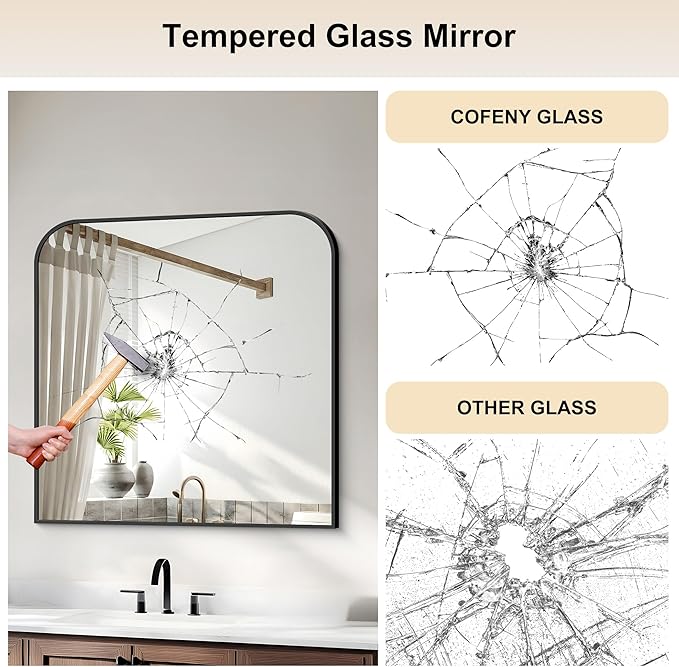 - STURDY PACKAGE: Black bathroom mirror is not only protected with multiple layers of packaging to safeguard the glass, but also features reinforced corner guards to prevent scratches or damage to the corners during transportation
