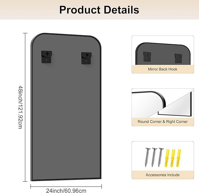 - STYLISH DESIGN: The combination of rounded tops and rectangle angles adds a stylish and modern vibe to your room. Black rectangle mirror is a good choice to decorate your bathroom, bedroom, living room, office, etc