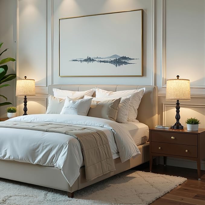 - High-quality Materials: Our table lamps for bedroom set of 2, its base is made of heavy Iron material with a 5-inch diameter chassis that reduces the risk of tipping by 70%. The desk lamp for home office' shades are made of linen, giving them a rustic feel and charm, and the resin body adds a lovely rustic farmhouse style. Blends perfectly with your home decor wherever it is placed