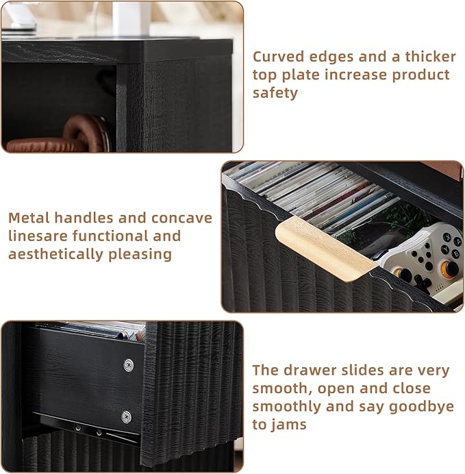 - [LEYAOYAO Versatile Farmhouse Nightstand] Our fluted bedside table boasts a minimalist curve profile and a drawer with a unique waveform panel, which is a perfect blend of modern aesthetics and functional design. The smooth curved edges make your bedroom exude elegance! This night stand can be used not only as a bed side table but also as a living room end table. Add a strong rustic colour to your bedroom and living room.