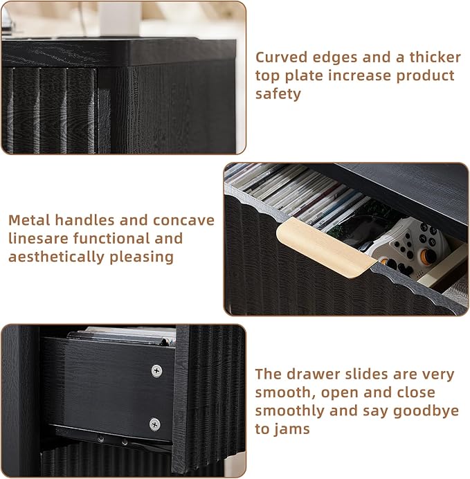 - [LEYAOYAO Versatile Farmhouse Nightstand] Our fluted bedside table boasts a minimalist curve profile and a drawer with a unique waveform panel, which is a perfect blend of modern aesthetics and functional design. The smooth curved edges make your bedroom exude elegance! This night stand can be used not only as a bed side table but also as a living room end table. Add a strong rustic colour to your bedroom and living room.