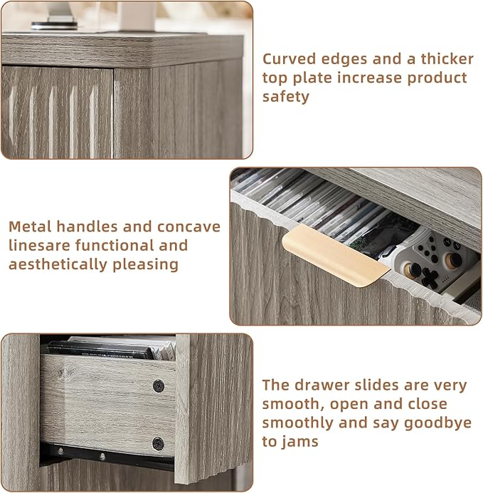 - [SPACIOUS STORAGE] The wooden night stand not only has a spacious tabletop but also comes with 3 hidden storage spaces and 1 open storage space. The open storage space allows easy access to your belongings. The spacious drawers help you to organise the space efficiently and make your desktop more tidy.