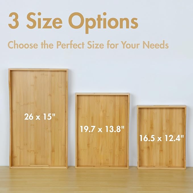 - 【Versatile All-in-One Tray】Whether you're serving breakfast in bed, carrying snacks to the patio, or enjoying coffee on the couch, this bamboo tray does it all. It’s also great for organizing everyday items like candles, plants, jewelry, or makeup, keeping things neat while adding a natural touch to your home