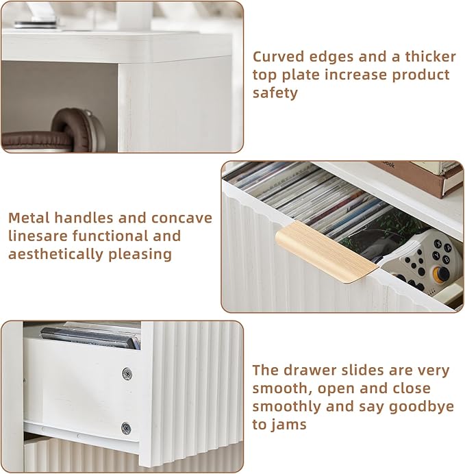 - [LEYAOYAO Versatile Farmhouse Nightstand] Our fluted bedside table boasts a minimalist curve profile and a drawer with a unique waveform panel, which is a perfect blend of modern aesthetics and functional design. The smooth curved edges make your bedroom exude elegance! This night stand can be used not only as a bed side table but also as a living room end table. Add a strong rustic colour to your bedroom and living room.