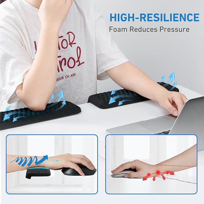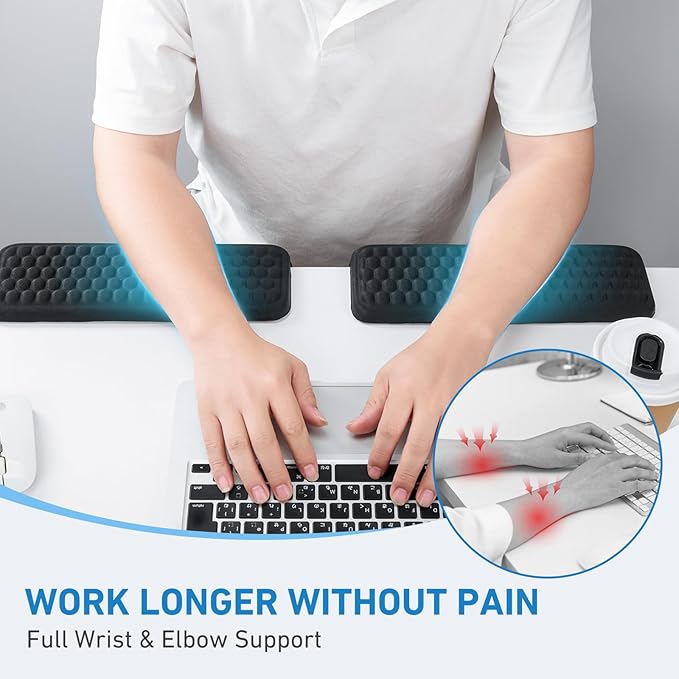 - Anti-Slip Rubber Base: Stays firmly in place during intense typing or gaming—the desk edge cushion for forearms features a grippy bottom that won’t budge, offering stable support on any surface