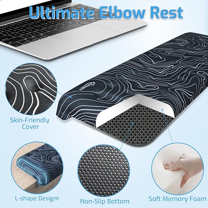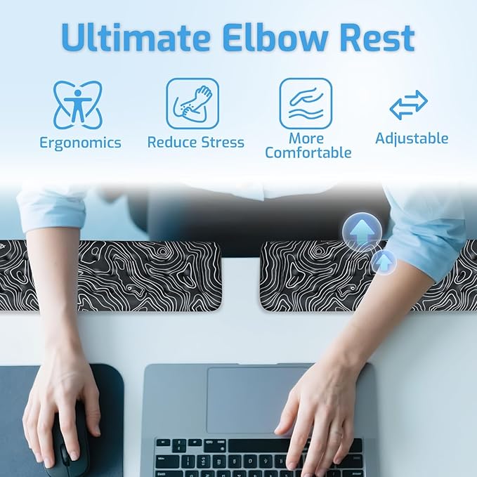 - Dual-Pad Comfort: Featuring two adjustable memory foam elbow pads (11.81” x 3.94” each), you can easily customize the spacing to fit any desk setup. Whether you prefer a straight or L-shaped configuration, this product adapts effortlessly to your workspace,ensuring optimal comfort and support.