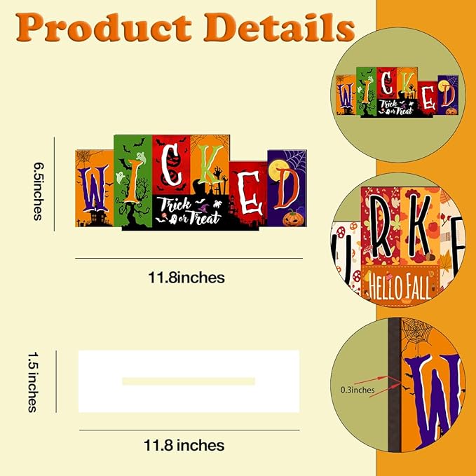 - Suitable Size: measuring approximately 11.8 x 6.5 x 0.2 inches, this wooden Halloween table decor is suitable for home decoration, and it can be placed on both small and large spaces
