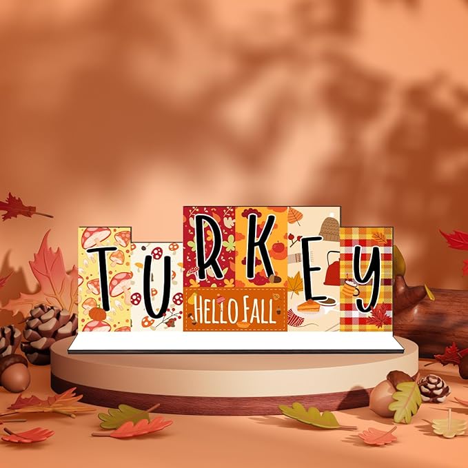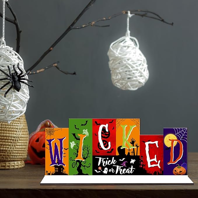 Double-sided Halloween Table Decorations Thanksgiving Tiered Tray Decor Wooden Table Sign, Fall WICKED Party Trick Decoration Tabletop Centerpiece Turkey for Desk Tiered Tray shelf Decor