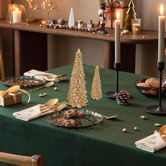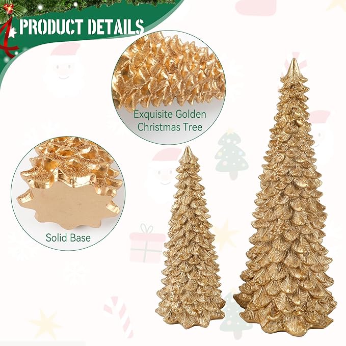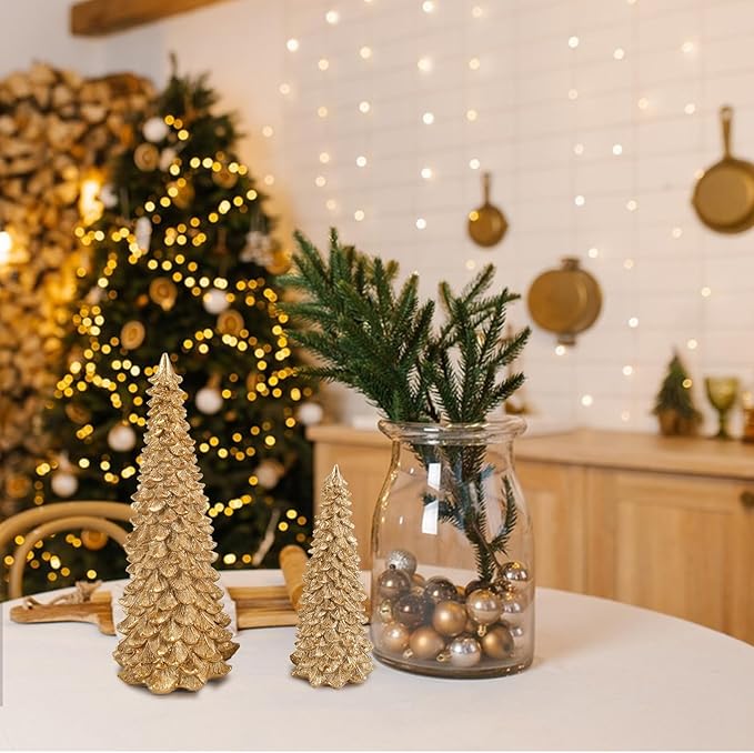 2Pcs Christmas Tree Decoration Figurines, Christmas Tree Statues Glittered Resin Desktop Mini Small Tabletop Ornaments Holiday Fireplace Home Decor Gifts (Glod)