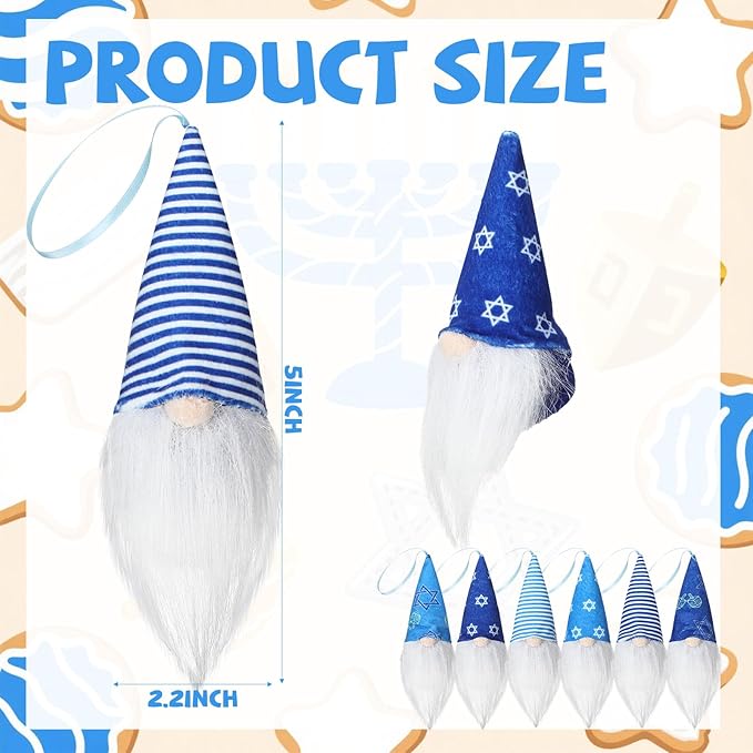 - Gnome Decoration Set: the package brings 6 Christmas tree gnome ornaments, each with a distinct patterned hat; This allows for diverse decor options, making them a versatile choice for Hanukkah embellishments and ideal for gifting