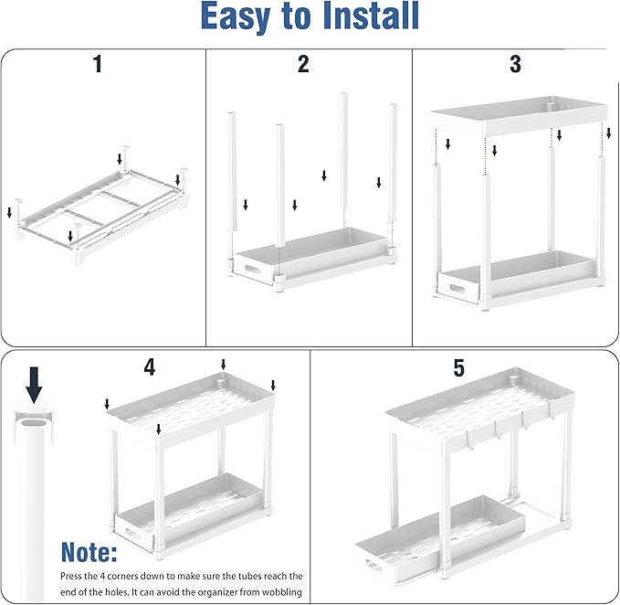 • 【Smooth Pull-Out Cabinet Organizers】Access detergents instantly! Dual-sliding drawers glide smoothly for 1-hand operation – no more bending to hunt under sinks.