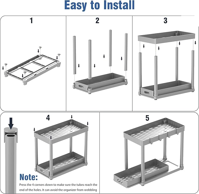 - 【Smooth Pull-Out Cabinet Organizers】Access detergents instantly! Dual-sliding drawers glide smoothly for 1-hand operation – no more bending to hunt under sinks.