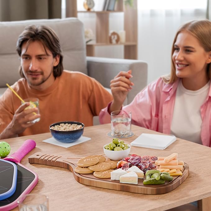 New – Pickleball Paddle Charcuterie & Cheese Board – Acacia Wood Cutting Board (16.9” x 8.1”) Pickleball gifts for men or women, Pickle Ball Plates, Serving Tray, Pickle ball Accessories