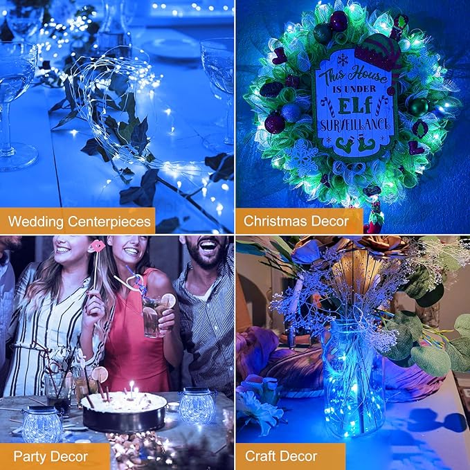 - Great Value 18 Pack and Durable: The multiple 18 Pack offers cost savings while meeting all your decor needs. Made of high quality 7FT silver wire, flexible and durable, cuttable to any length and easily put inside or wrapped around anything according to your needs. Feature 20 Led mini lights that emit a soft and blue glow, look like a wonderland, elegant and enchanting, creating a cozy and romantic ambiance