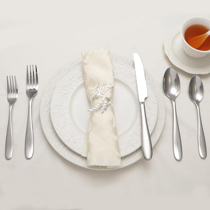 - Elegant Design: This is a very modern art style silverware set, clean lines, highly mirror polished, smooth edges, free of rough spots and edges, unique and elegant appearance would match well with your existing eating utensils, enhance your dining experience.