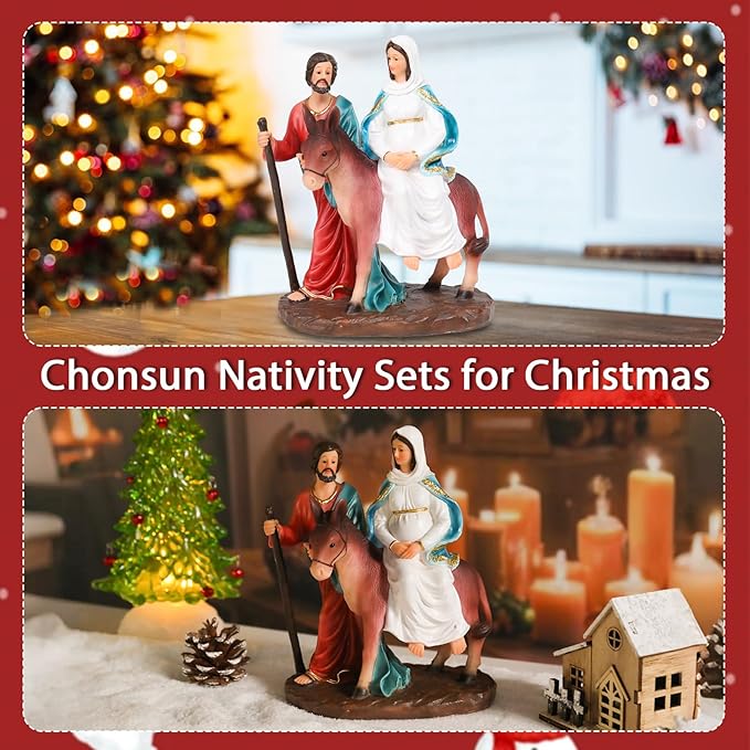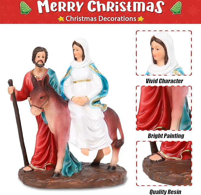 Christmas Village 7.9 Inch Nativity Sets Figurine Nativity Scene Interior Display Figurines Decorations Room Tabletop Indoor Decor