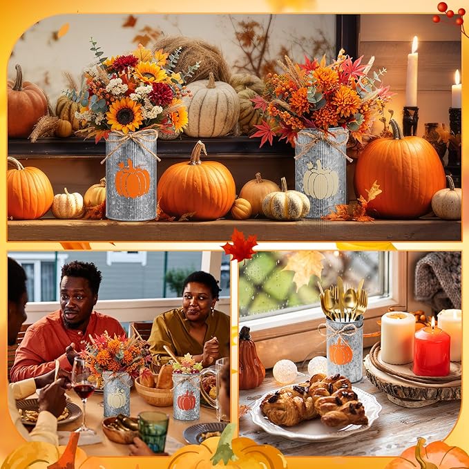 - Wide Application: these pumpkin-themed galvanized vases not only decorate your pumpkin-themed party, but are also an ideal decorative choice for fall, Thanksgiving, harvest, Halloween, or other autumn celebrations; These vintage autumn centerpieces for table bring a festive atmosphere to any event, allowing you to creatively apply them as a stand for vases or Thanksgiving decorations, making them a good representation of fall