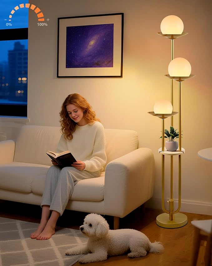 - Stepless Dimmable Floor Lamp✨Mid century modern floor lamp is dimmable with stepless adjustment of 0-100% brightness. According to different scene needs, you can choose any brightness from dim & eye protection to full brightness by turning the dimmer knob.