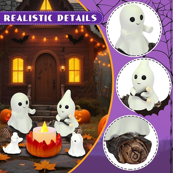 - 【High - Quality 3D Construction】 Crafted with attention to detail, our halloween ghost decor is made from durable resin materials to ensure durability and a realistic 3D effect. Every feature, from the ghost's expressions to the texture of the campfire and the dog's fur, is meticulously designed. The 3D structure gives the scene depth and dimension, making it look like a miniature Halloween world right on your tabletop. You'll be amazed at the level of craftsmanship that goes into this small but impressive indoor halloween decoration.