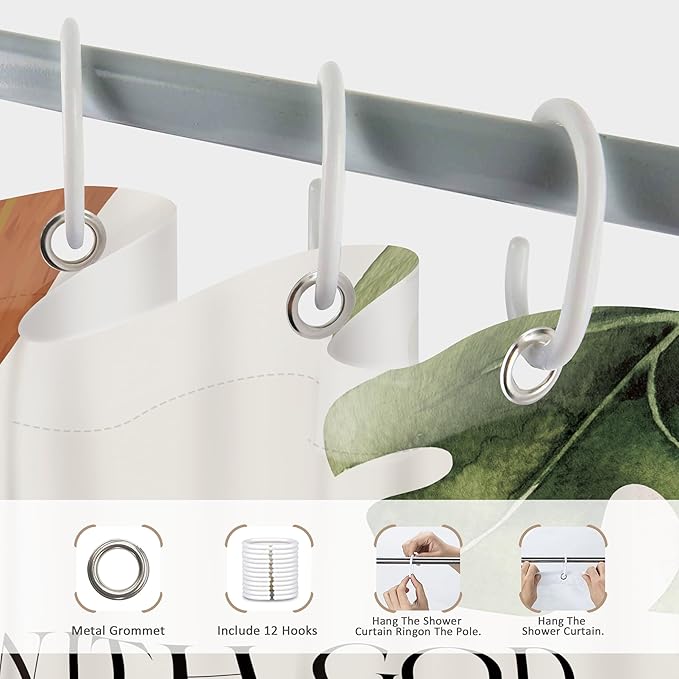Glawry Boho Bible Verse Shower Curtain Extra Long Inspirational Scriptures Quotes Abstract Palm Leaf Bathroom Mid Century Christian 72Wx84L Inches Bath Accessories Art Home Decor Fabric 12 Pack Hook