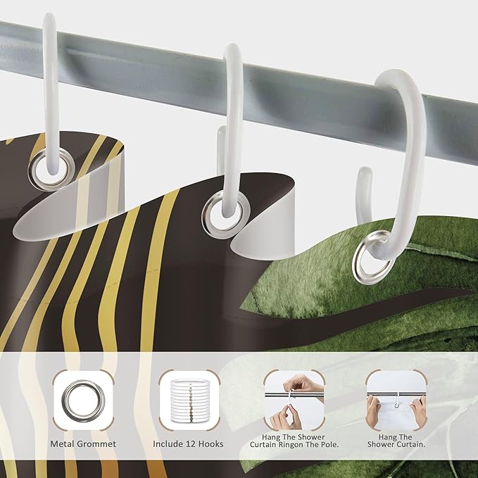 - 【Premium Materials】This dark green gold boho mid century shower curtain is made of 100% environment-friendly polyester fabric, water resistant, quickly dry, odorless, safety and fadeless.