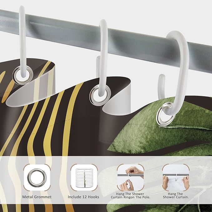 Glawry Dark Green Gold Boho Mid Century Shower Curtain Extra Long Abstract Minimalist Geometric Tropical Modern Leaf Bathroom Simple 72Wx78L Inches Bath Accessories Art Home Decor Fabric 12 Pack Hook