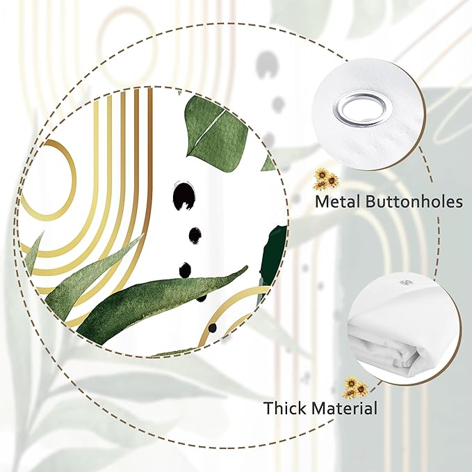 - 【Premium Materials】This green gold boho mid century shower curtain is made of 100% environment-friendly polyester fabric, water resistant, quickly dry, odorless, safety and fadeless.