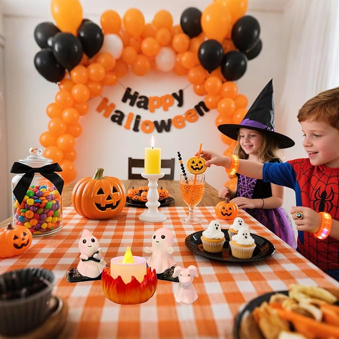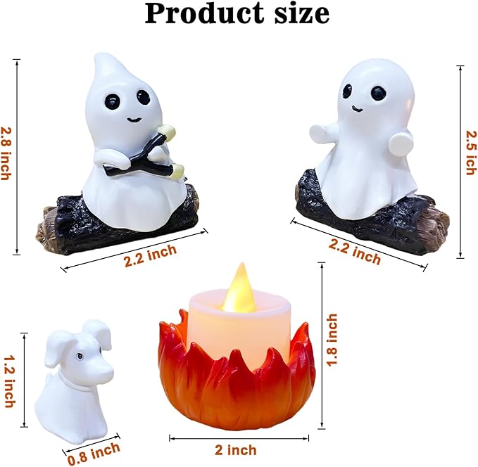 - 【Spooky-Cute Ghost Campfire Flickering Nightlight】 Featuring charming little ghosts roasting marshmallows and warming their hands around a cozy campfire, this decor adds a whimsical and playful vibe to your home decor. The ghost - dog sits obediently, its eyes full of curiosity, cuddly element to the scene. Enhance your festive spirit with this charming ghost nightlight set, perfect for both halloween and year-round decor.