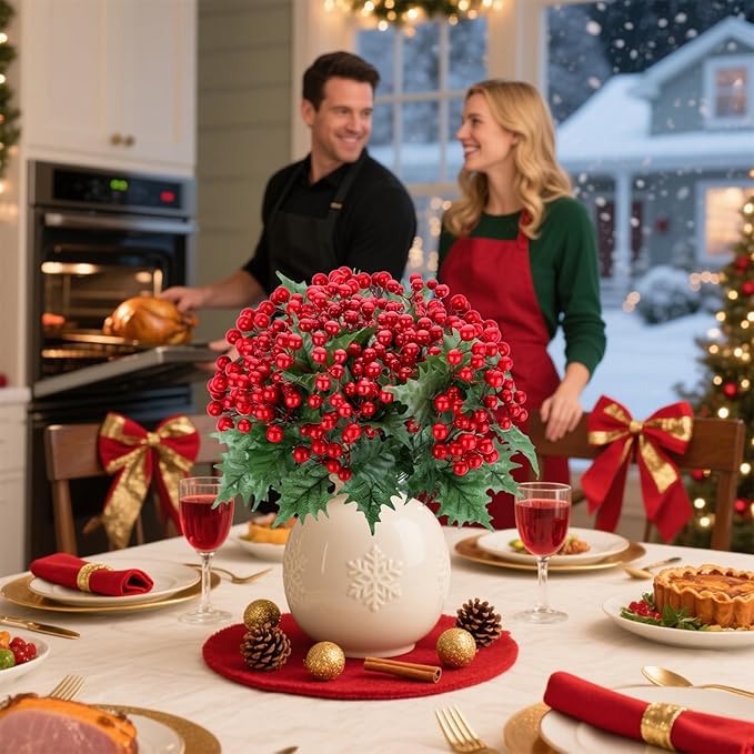 - Various Uses: Designed to complement any event or season, these faux berry stems effortlessly elevate your decor. Use them for festive Christmas arrangements, table centerpieces, wedding bouquets, or everyday home accents. Their classic charm enhances rustic farmhouse vases, offering limitless options for holidays, celebrations