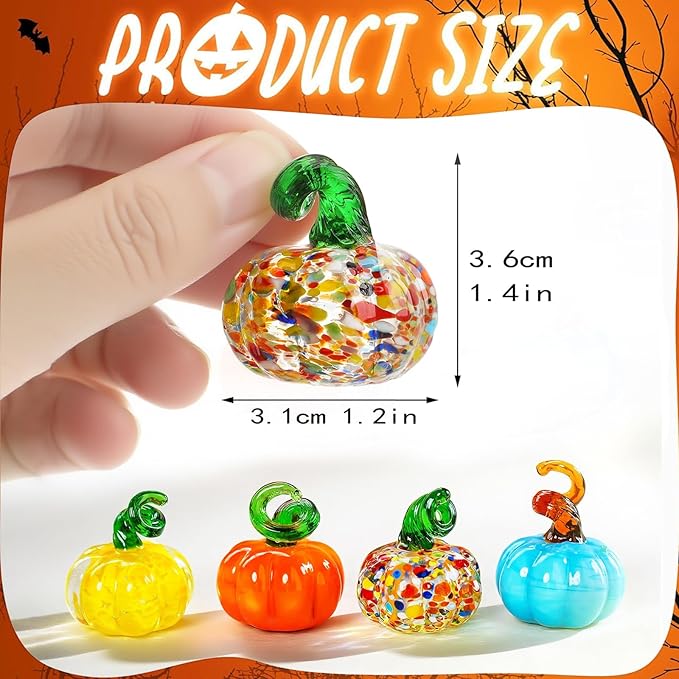 - Commemorate the warm ambiance of Halloween celebrations with these beautifully designed glass pumpkins.Specification: Size: 1.2 "W x 1.4 "H Quantity: 8pcs Material: glass
