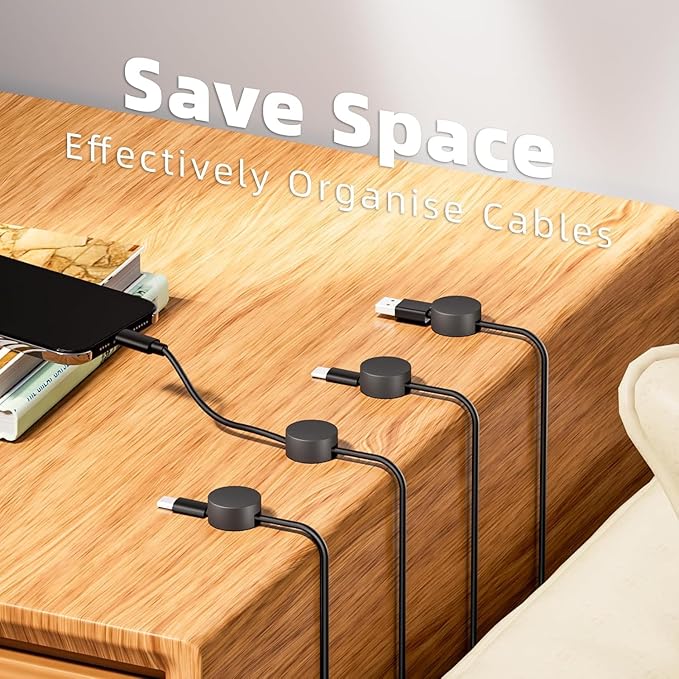 - 【Magnetic Adsorption Design】Fed up with cables falling off flimsy clips? Our magnetic cable straps firmly attaches to metal surfaces. The U - shaped slot locks cables up to 0.31'' in diameter stably. Say goodbye to tangled cords on desks, nightstands, or in cars—keep Type - C, Lightning, and earphone wires neatly positioned