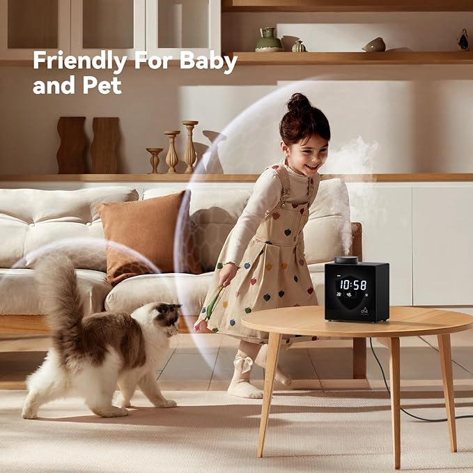 - Smart All-in-One Diffuser – Your Home’s Perfect Companion: Crafted with a sleek acrylic front panel and durable aluminum alloy body, the AROMADD 2026 is more than just a waterless diffuser—it’s a multi-functional smart scent system. Equipped with a clear digital clock, real-time temperature and humidity sensors, and an essential oil level monitor, allowing you to monitor your room’s environment while enjoying a consistently refreshed atmosphere. Using advanced cold-air diffusion technology, it produces ultra-fine 1μm mist droplets that preserve the natural properties of essential oils, delivering an authentic fragrance experience