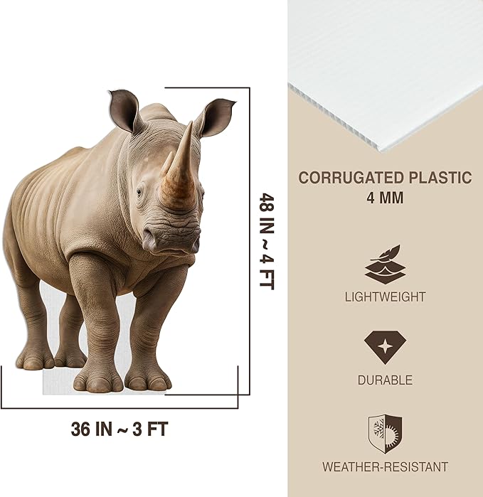 Rhino Life Size Standee - 4FT Freestanding Coroplast Cutouts | Safari Animal Standup Photo Booths, Jungle Party, Birthday & Halloween Decorations