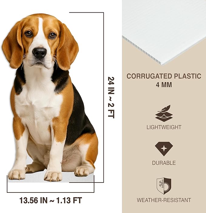 Dog - Beagle Life Size Standee - 2FT Freestanding Coroplast Cutouts | Pets Animal Standup Photo Booths, Birthday & Halloween Decorations