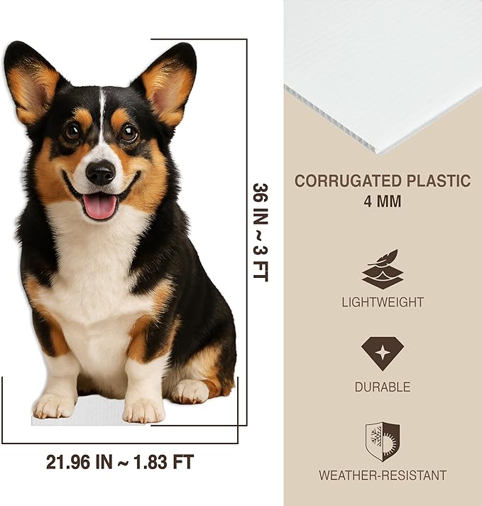 Dog - Corgi Tricolor Life Size Standee - 3FT Freestanding Coroplast Cutouts | Pets Animal Standup Photo Booths, Birthday & Halloween Decorations