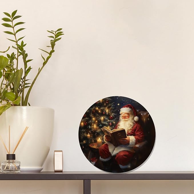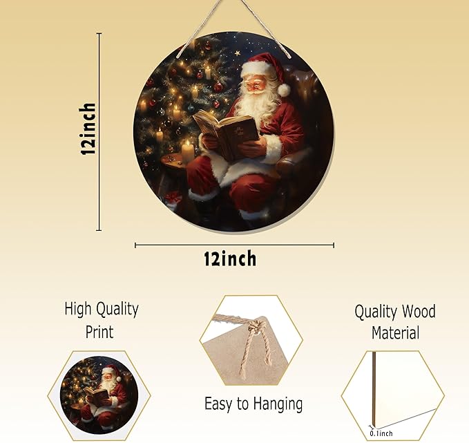 CGBHW Christmas Santa Wooden Sign, Rustic Xmas Santa Bookish Hanging Sign Wall Decor for Library Reading Nook Corner Room Home, xxx Door Decor 12 x 6 Inch