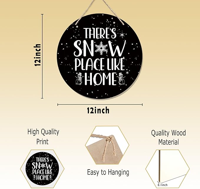 CGBHW Winter Wooden Sign, Snowy Holiday Hanging Sign Wall Decor for Room Home, Rustic Black Winter Snowflakes Christmas Door Decor 12 x 6 Inch