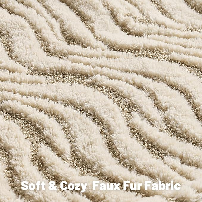 - Ultra-soft faux fur fabric on both sides,adorned with a dimensional geometric ripple texture.