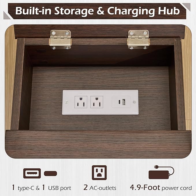 - End Table with Charging Station: Hidden outlet with 3 outlets, 1 USB port, 1 type-C port. Designed grooves from tabletop to prevents clutter. Paired with a 4.9 ft power cord, it eliminates the distance limitation of sockets