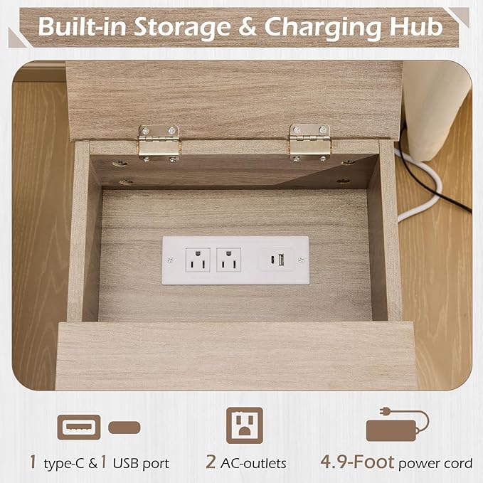 - End Table with Charging Station: Hidden outlet with 3 outlets, 1 USB port, 1 type-C port. Designed grooves from tabletop to prevents clutter. Paired with a 4.9 ft power cord, it eliminates the distance limitation of sockets