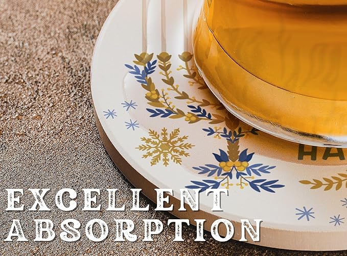 Onebttl Hanukkah Gifts Coaster - Set of 6 Ceramic Absorbent Coasters with Cork Base, Home Decor for Men & Women