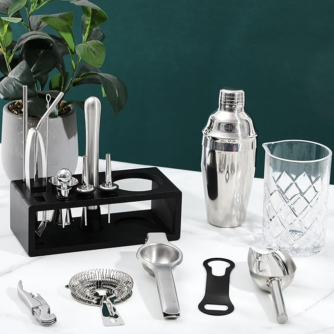 - Quality Materials: crafted with robust PVA plastic and durable stainless steel, this cocktail shaker set promises longevity and reliability; The materials ensure the bartender kit stands resilient in various bar settings, enhancing your bartending experience with every shake