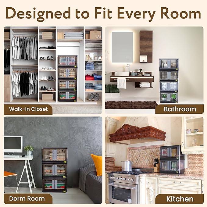 - SMART STACKABLE DESIGN - Three 8.5-gallon storage bins stack securely to maximize vertical space while minimizing footprint. Clear doors with secure latches provide easy access even when stacked, making these ideal for dorms, apartments, and organized homes where space optimization is essential.