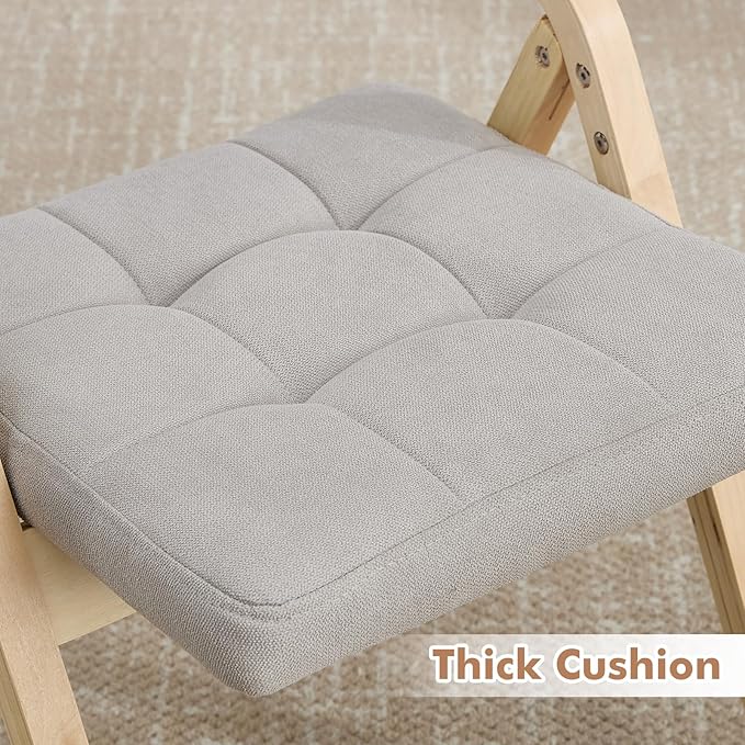 2-Pack Folding Dining Chairs with Cushion,Padded Foldable Dining Chairs,Portable Wooden Folding Chairs for Dining Rooms Kitchen Wedding and Party Indoor LIGHTGREY