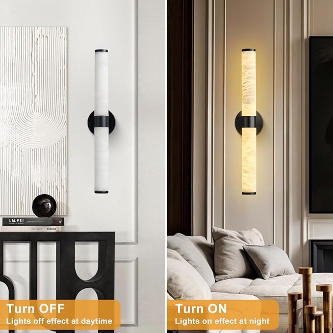 Alabaster Wall Sconce - 24" Black Wall Sconce Light, Modern Natural Spanish Marble Sconces Wall Lighting, Bathroom Vanity Sconces Wall Lights for Living Room, Bedroom, Hallway, Stairs, Matte Black