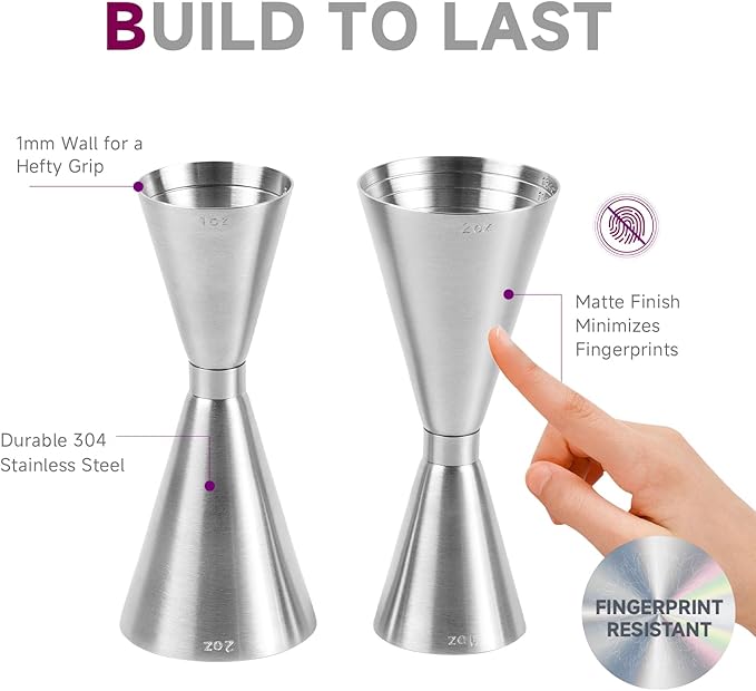 - Stylish & Practical Design: Crafted from premium 304 stainless steel with a matte finish, this cocktail jigger stays looking clean with no easy to leave fingerprinting and smudges while delivering a refined, vintage-inspired look.
