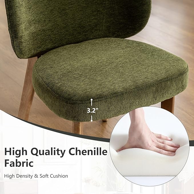 YOUNIKE Dining Chair with High Back Single Mid Century Modern Kitchen Chair Boucle Fabric Upholstered Armless Accent Chair 20" Wide Padded Seat with Wooden Legs for Living Room Bedroom Green