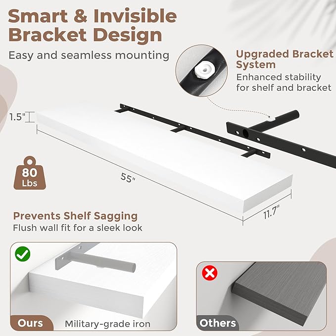 - Easy to Install: With included magnetic level and detailed instructions, you can mount these shelves gap-free in under 10 minutes, even without experience.