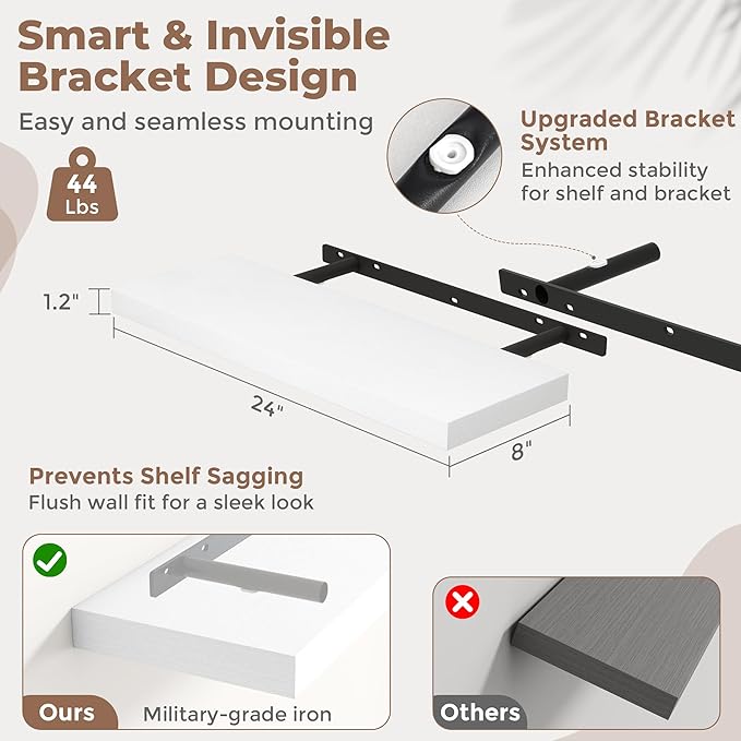 - Easy to Install: With included magnetic level and detailed instructions, you can mount these shelves gap-free in under 10 minutes, even without experience.